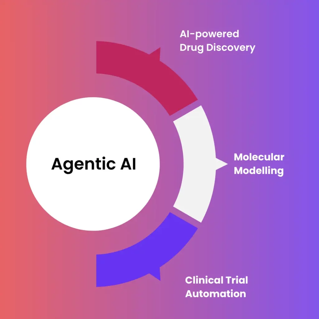 In life sciences, the transformation runs even deeper. Agentic AI is accelerating AI-powered drug discovery, molecular modeling, and clinical trial automation. It enables in-silico screening, real-time data analysis, and smarter orchestration of research studies.