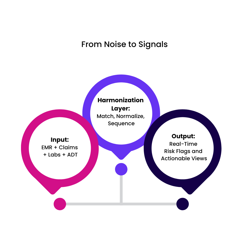 This transforms siloed data into time-aware signals that care teams can trust.